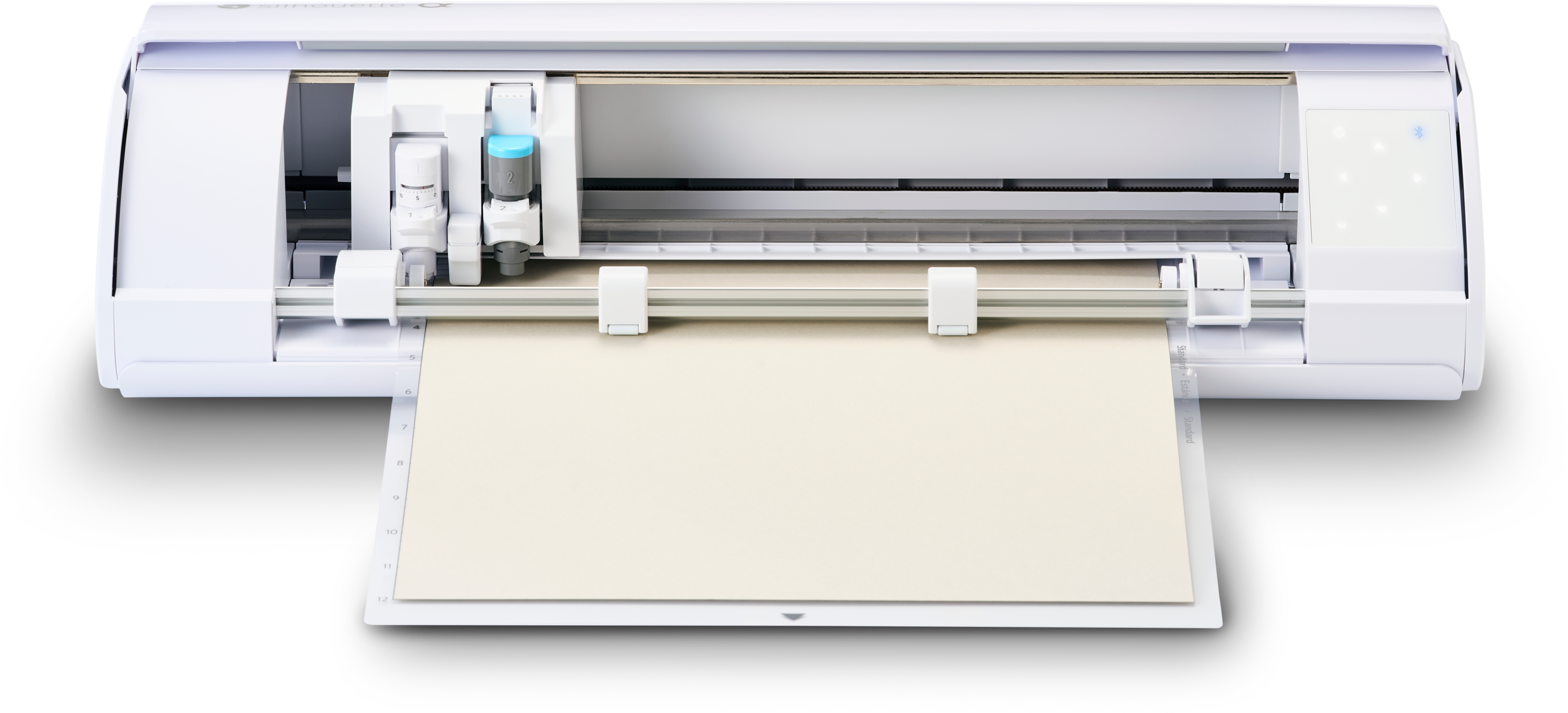 Der Silhouette CAMEO5α und der CAMEO5α PLUS bieten beide höchste Präzision, intelligente Schneidtechnologien und Kompatibilität mit einer großen Auswahl an Werkzeugen. Der entscheidende Unterschied liegt in der Materialbreite: Während der CAMEO5α Materialien von 5 bis 12 Zoll verarbeitet, erweitert der CAMEO5α PLUS diesen Bereich auf bis zu 15 Zoll – ideal für größere Designs wie Wanddekorationen oder umfangreiche Plotterprojekte. Wer also überwiegend im kompakten Format arbeitet, ist mit dem CAMEO5α bestens ausgestattet, während der PLUS mehr Spielraum für großformatige Projekte bietet!
