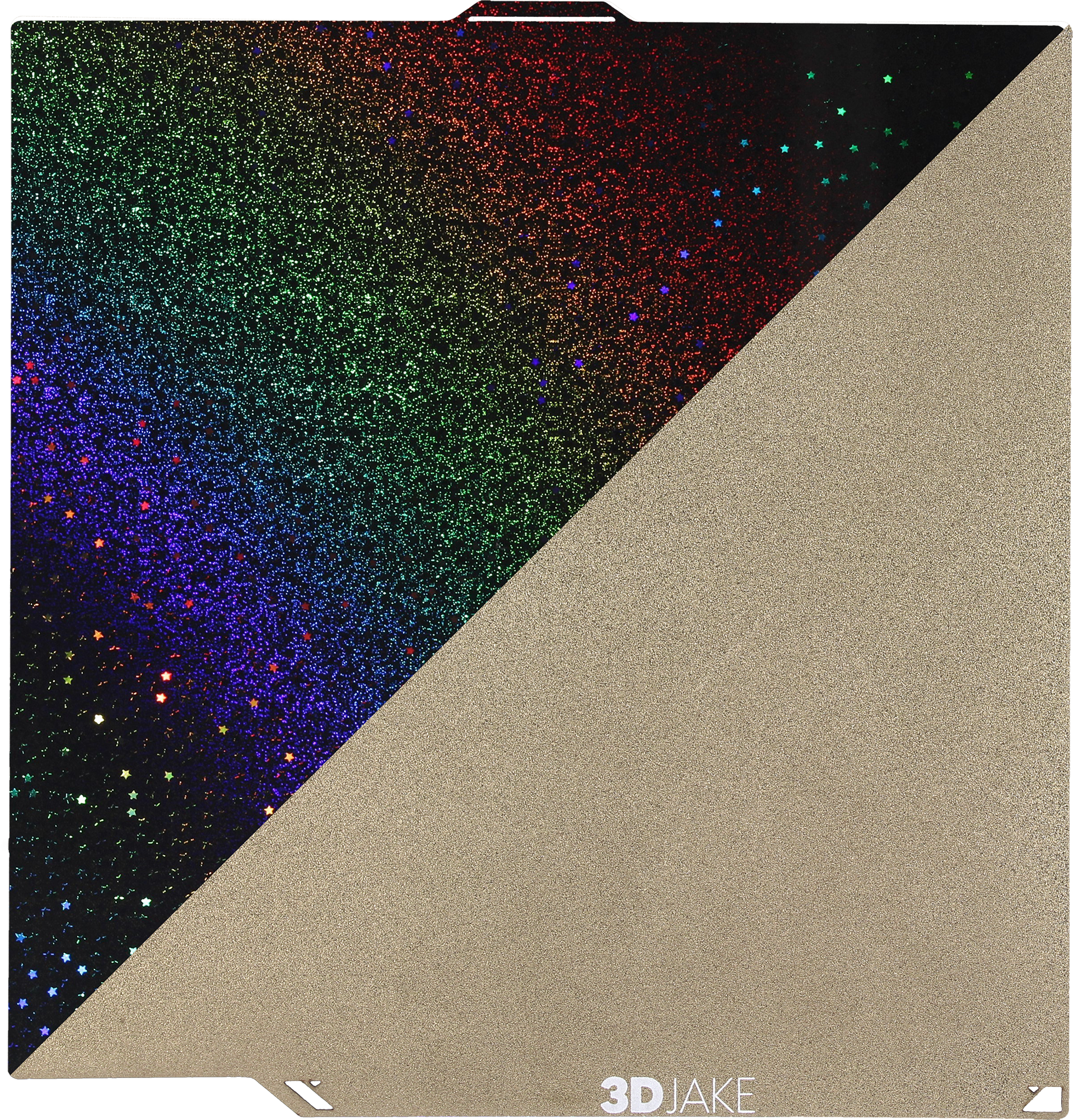 La plaque d'impression PET/PEI Magic de 3DJAKE est une plaque flexible à revêtement double-face et à base magnétique. Une face de la plaque est en PET avec un motif arc-en-ciel chatoyant qui donne aux objets imprimés des effets visuels uniques. L'autre face est recouverte d'un revêtement Powder Coated PEI pour une excellente adhérence et un décollement facile des modèles.
