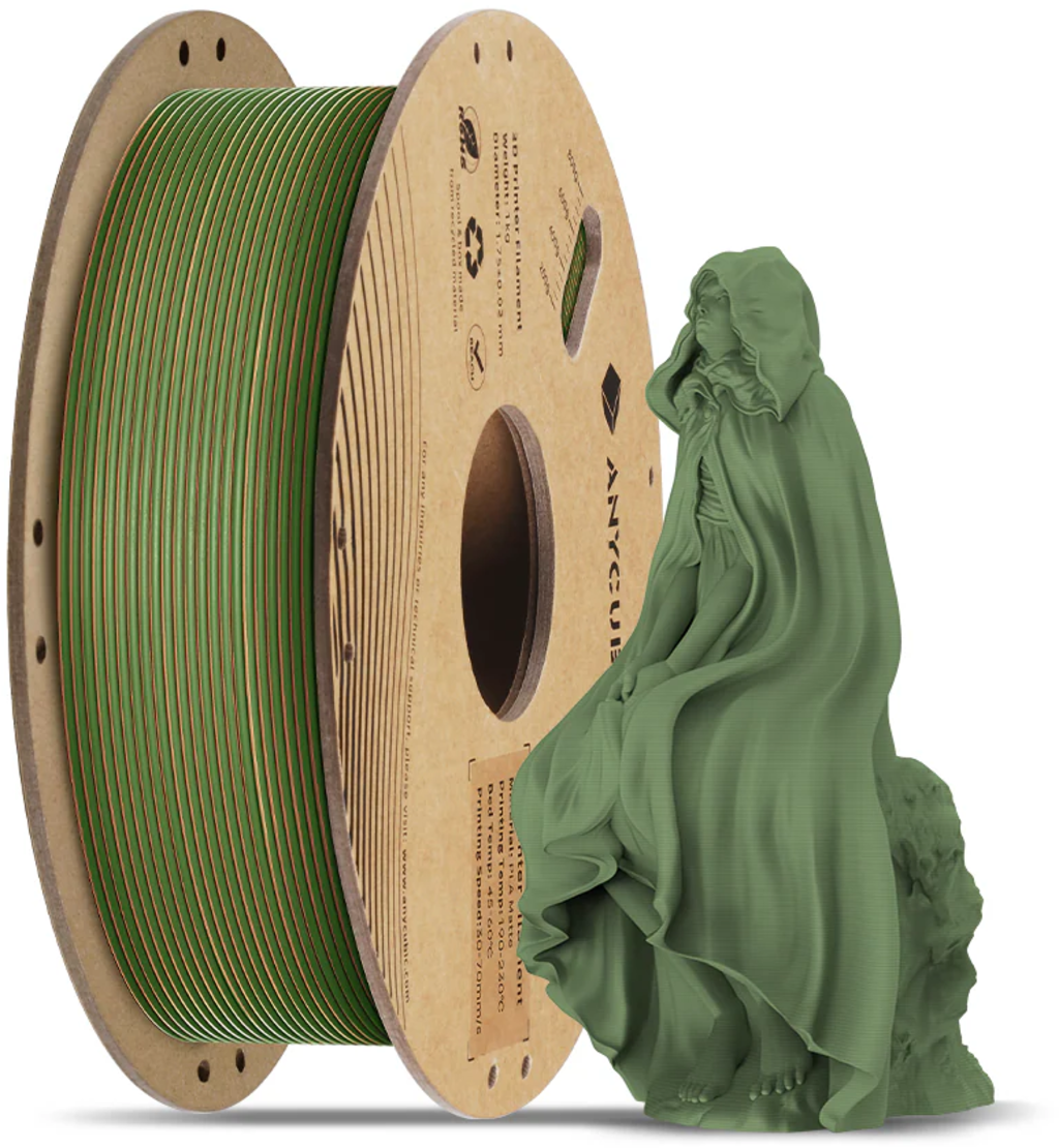 Anycubic PLA Matte allie couleurs mates élégantes, toucher agréable et excellentes performances d’impression pour un filament vraiment convaincant. Sa surface douce, sa faible brillance et ses teintes raffinées donnent à vos modèles 3D un rendu haut de gamme, sans lignes de couche visibles.