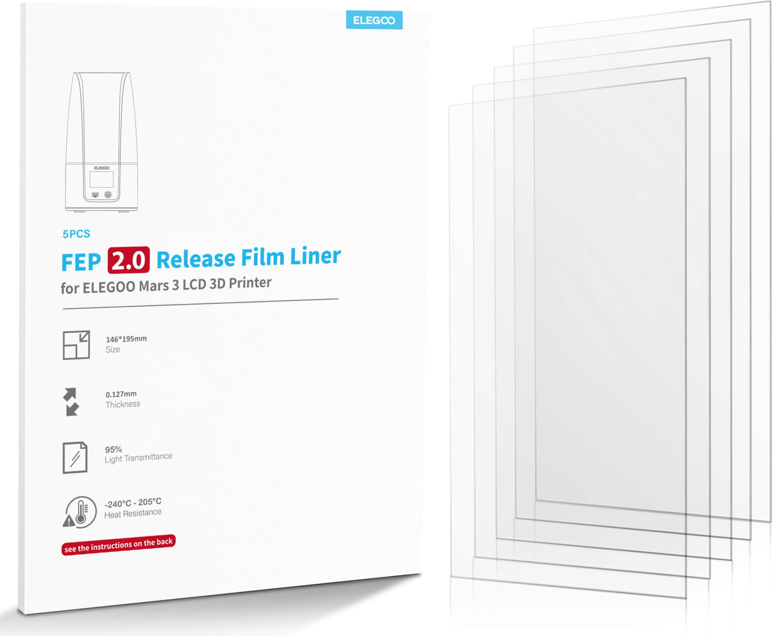 Il s'agit d'un ensemble de 5 films FEP d'Elegoo pour remplacer ceux de votre imprimante 3D Elegoo.