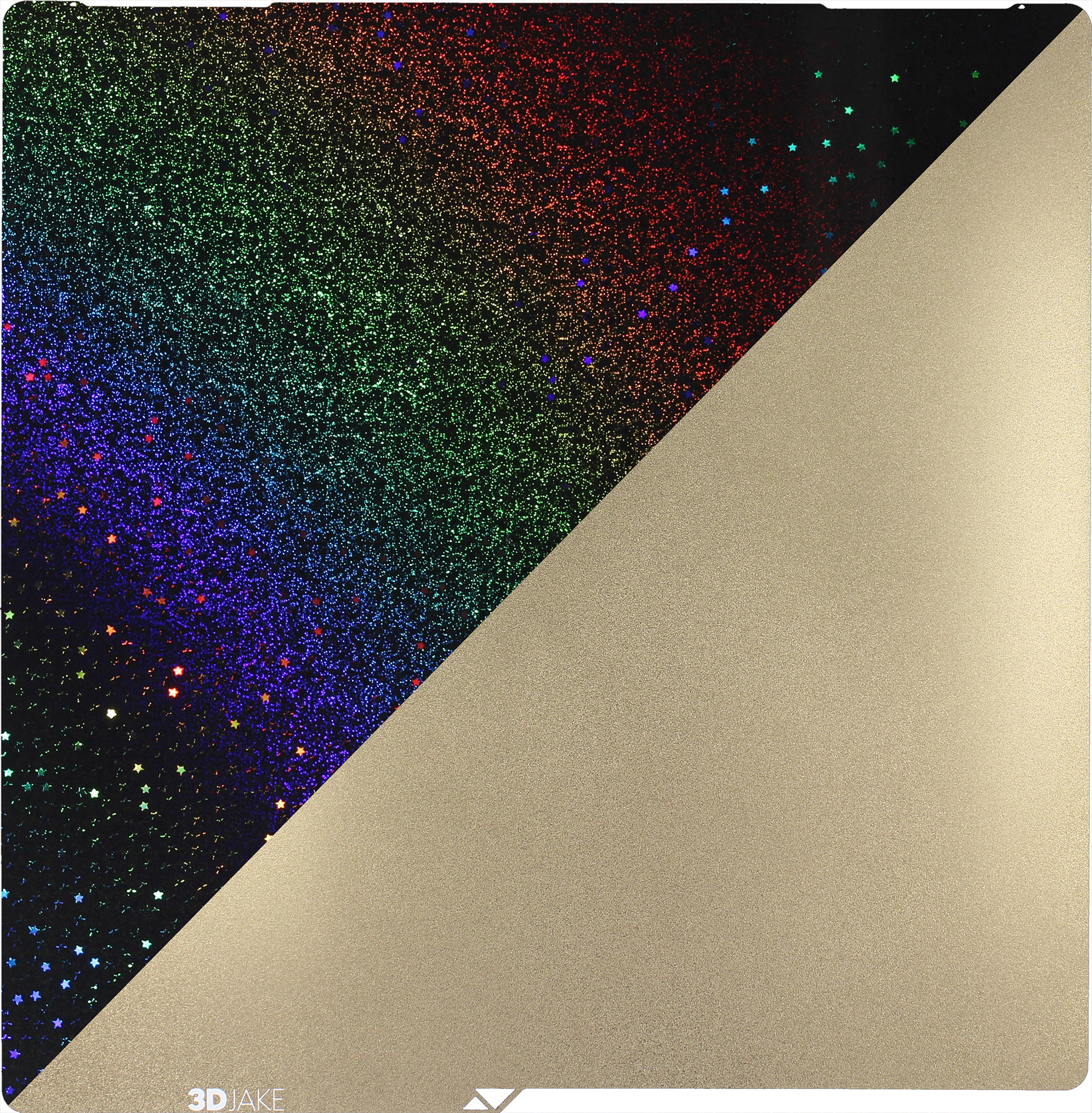 De PET/PEI Magic Bouwplaat van 3DJAKE is een flexibele, dubbelzijdig gecoate bouwplaat met een magnetische basis. De ene kant van de bouwplaat is gemaakt van PET-materiaal met een glinsterend regenboogpatroon, wat de geprinte objecten unieke visuele effecten geeft. De andere kant heeft een Powder Coated PEI-coating voor een uitstekende hechting en eenvoudige verwijdering van de modellen.